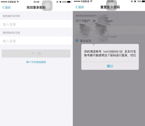 这时页面显示出可以通过回答安全保护问题找回密码,出于对好友很了解,便很快答上了两个安全保护问题。随后成功修改了该好友的支付宝密码并进行了登录。
